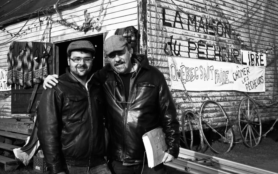 Paul Rose et son fils Félix, en septembre 2012, à Percé, devant La Maison du Pêcheur, reconstruite pour le film du même nom, qui sortira en octobre 2013.
