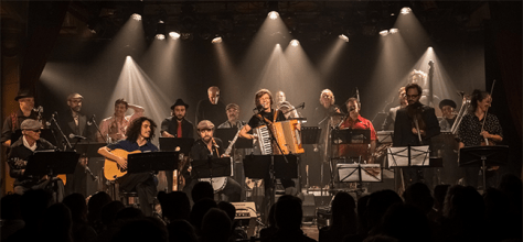 La Fanfare Pourpour est une famille musicale. Une grande, très grande famille comme en bâtissaient nos aïeux, tous ensemble, assis et debout autour de la table à se partager les festins de notes, les chansons, la route, la complicité, les plaisirs. Depuis 40 ans, les belles folles et beaux fous de la Fanfare Pourpour, qui s’est précédemment appelé le Pouet Pouet Band et L’Enfant fort, sillonnent les routes du Québec, avec quelques détours en France, en Suède, au Mexique et en Irlande, invités là-bas pour le mariage du fils de George Martin, sur recommandation de George Harrison. Et sur ces routes, la Pourpour a retrouvé en trois occasions le Mouton NOIR pour des spectacles bénéfices en compagnie, entre autres, de Richard Desjardins. Et aussi le public du Festi-Jazz de Rimouski, sous le grand chapiteau, il y a… déjà trop longtemps. Encore, s’il vous plaît!